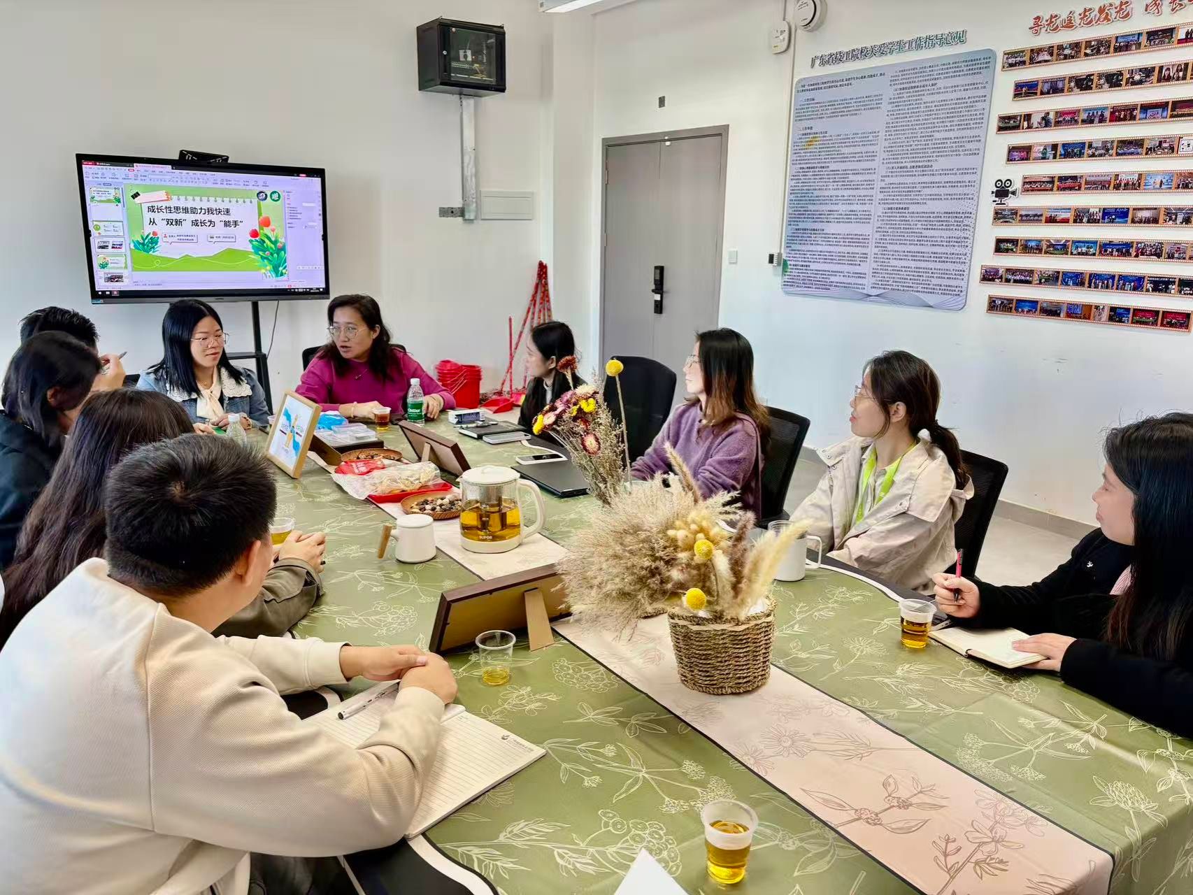 交流活动中,广州市公用事业技师学院赵彩红名班主任工作室展示了其在师资培养和班级管理方面的丰硕成果。首先,赵彩红工作室成员杨丛榕老师分享了她个人的专业成长历程。杨老师结合自身从“双新”(新教师、新班主任)到业务能手的蜕变经历,生动阐述了如何运用“成长性思维”突破职业瓶颈,鼓励在场班主任将挑战视为机遇,将努力聚焦于策略优化,为我校青年教师的成长提供了宝贵的借鉴。