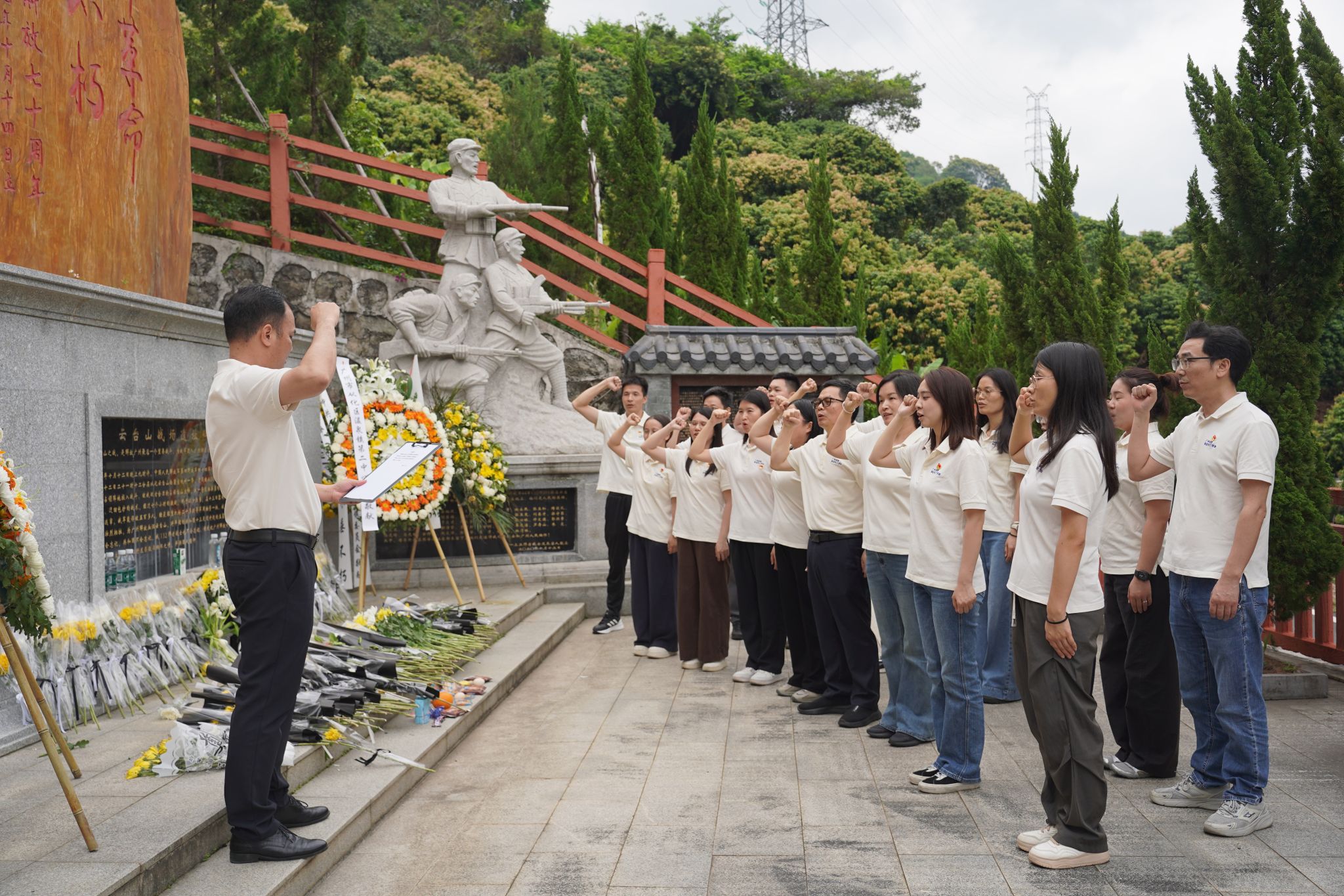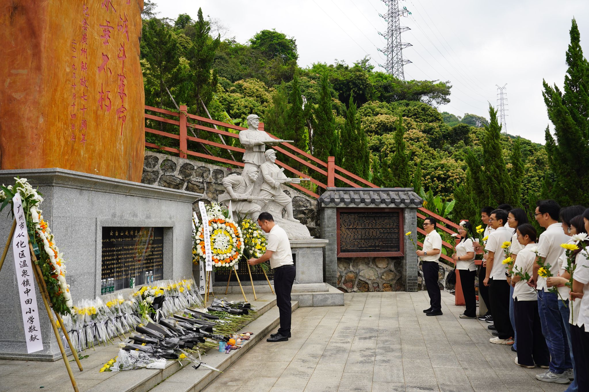 下午4时,党员同志们前往宣星村云台山战役遗址。作为解放广州的重要红色纪念地,云台山战役遗址承载着革命先烈为民族解放、人民幸福浴血奋战的峥嵘历史。在庄严肃穆的氛围中,全体党员向革命先烈敬献鲜花、深情祭拜,深切缅怀革命先烈的崇高精神与不朽功勋,在红色热土上感悟初心使命,汲取奋进力量。