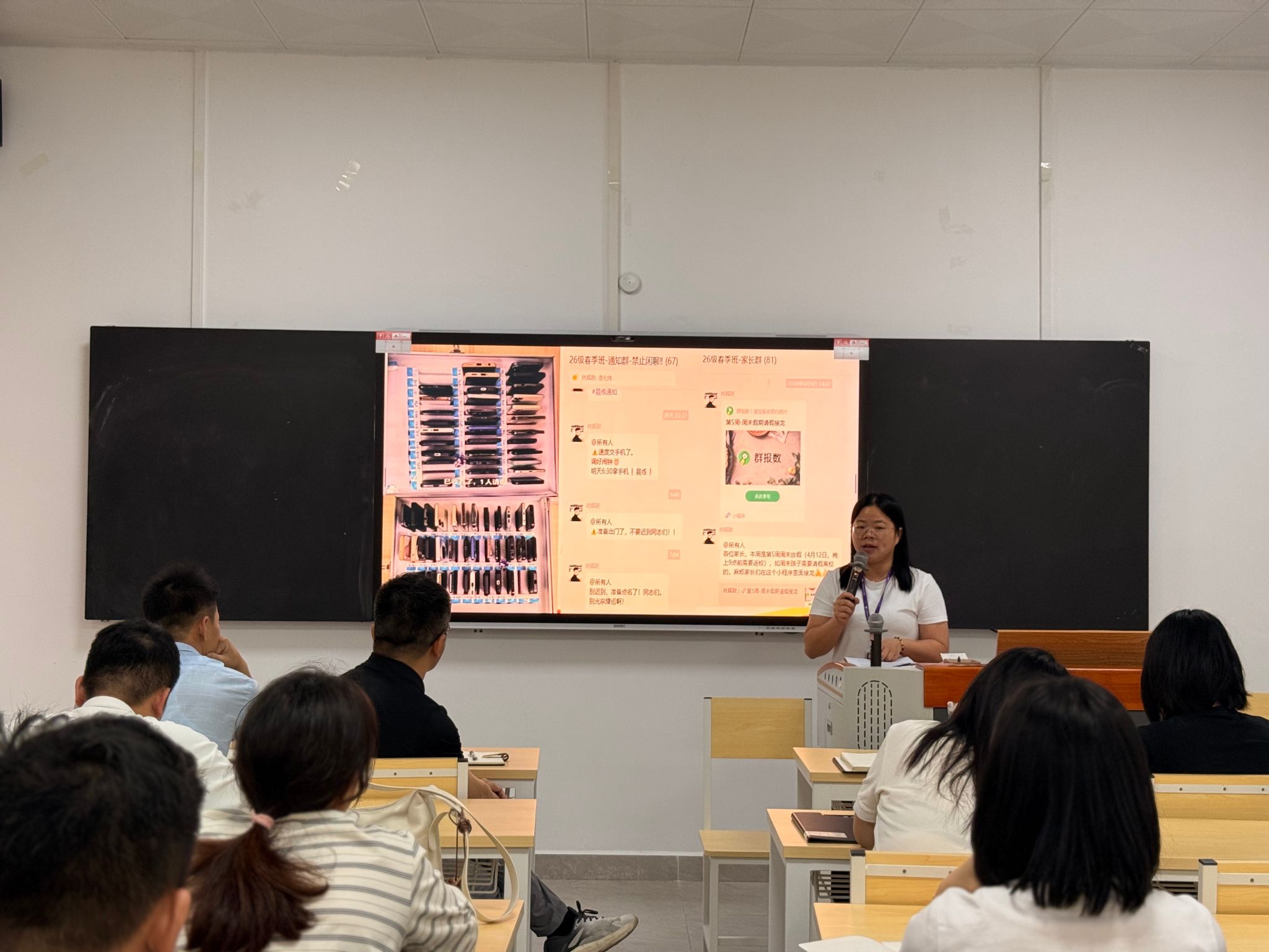 随后,周丽霞老师结合自身带班实践,分享了宝贵的班级管理经验与心得。她从学生思想引导、班风学风建设、家校沟通协作、特殊学生关爱等方面,分享了实用的管理方法与育人感悟,为全体班主任提供了可借鉴的工作思路,助力大家提升班级管理的针对性与实效性。
