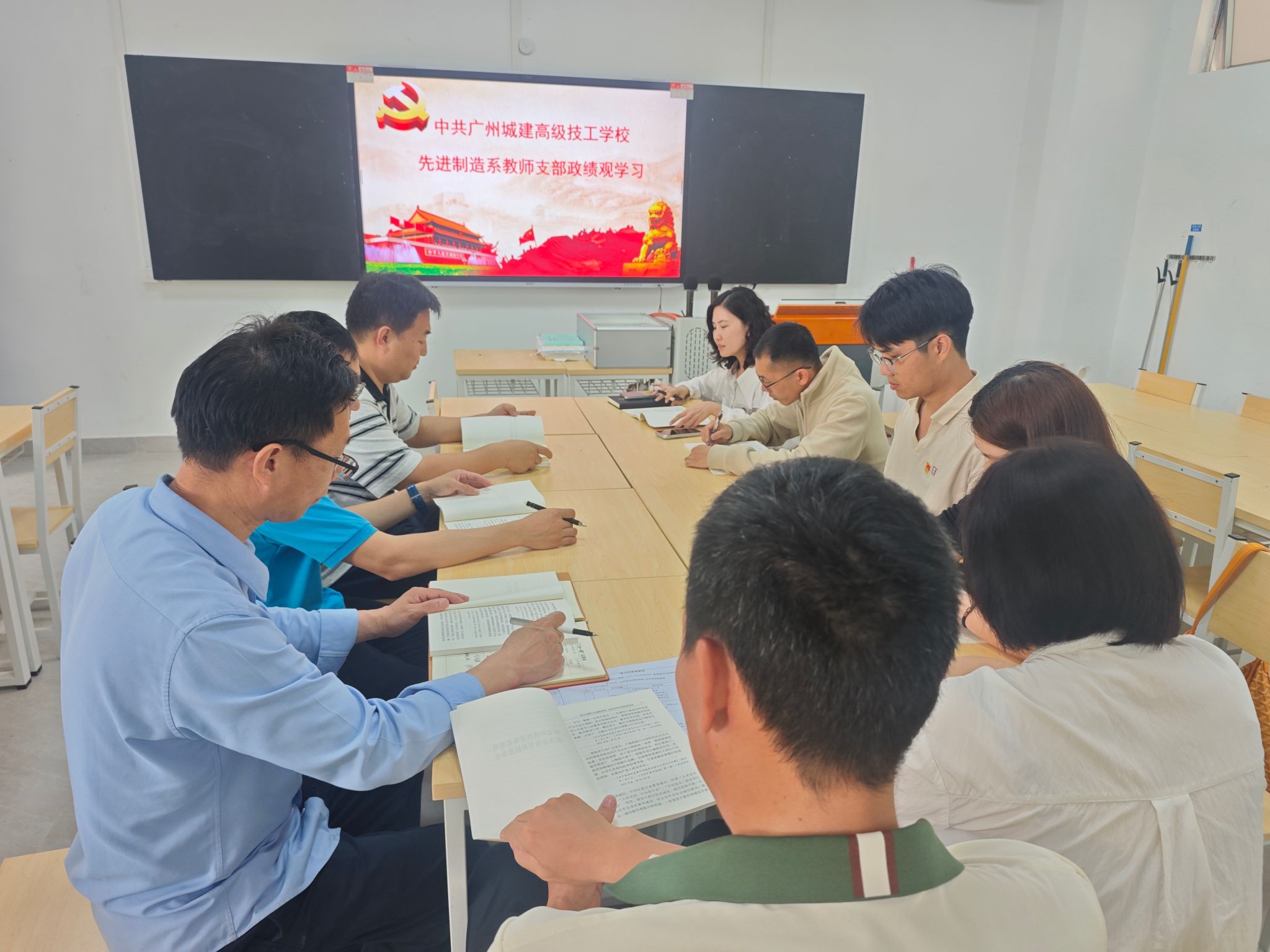 先进制造系教师党支部政绩观专题学习。全体党员深刻领会正确政绩观内涵,聚焦“为党育人、为国育才”根本任务,明确教师党员的政绩在于立德树人、提升教学质量、培养高技能人才,坚决摒弃形式主义,以实干担当践行育人使命。