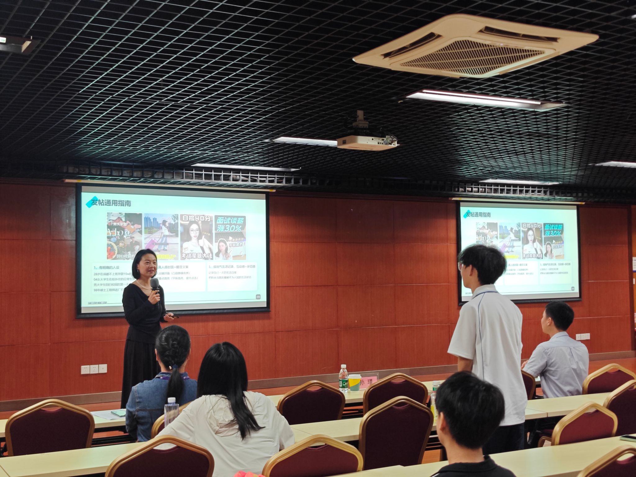 沟通互动环节,电子商务专业的同学们与企业负责人进行了踊跃发言和交流,孙总对同学们的疑问进行详细解答,气氛热烈。