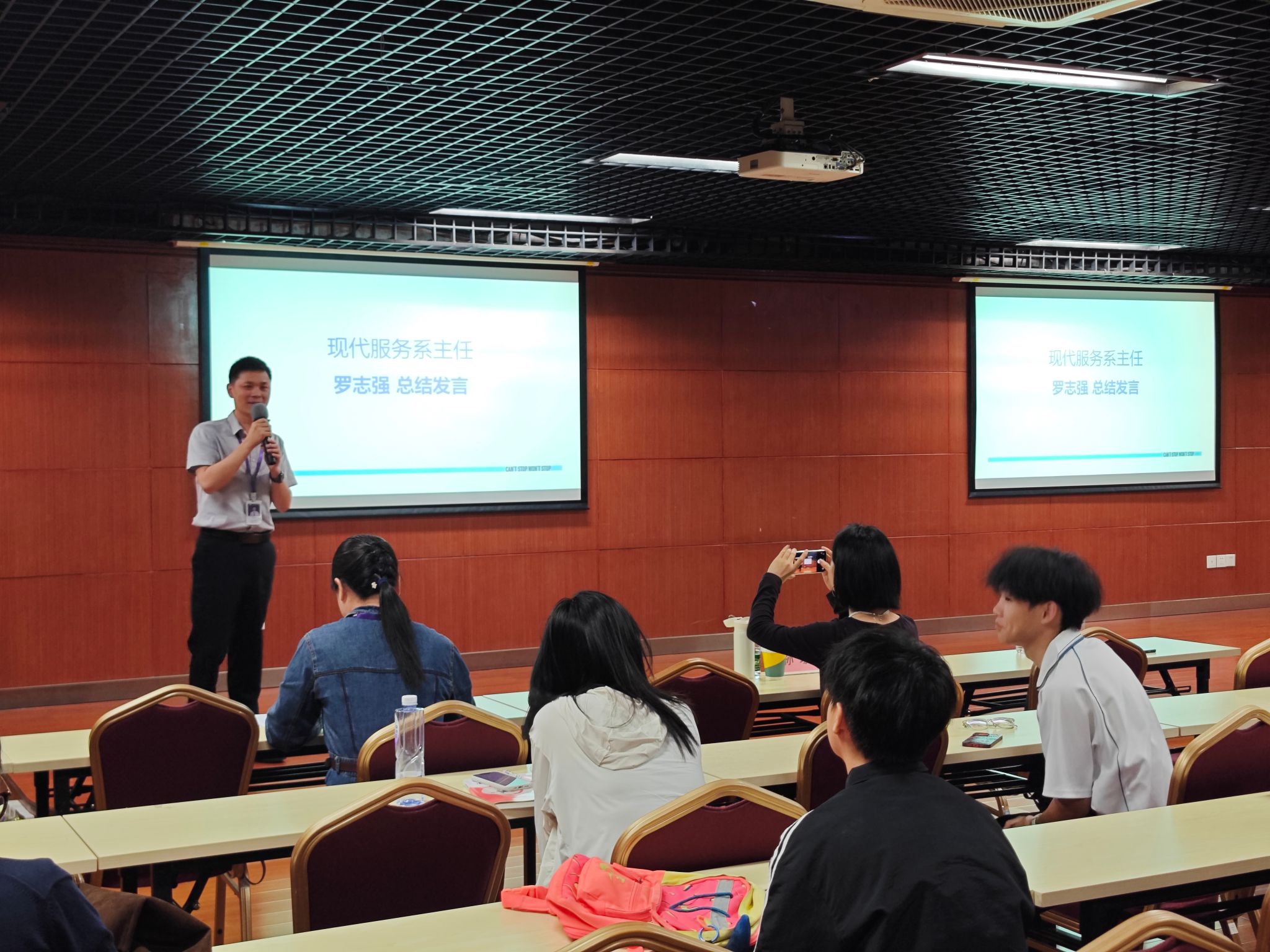 最后,现代服务系罗志强主任进行了总结发言,他表示,学校电子商务专业建设与造浪计划人才培养方向高度契合。此次合作,双方将共建实战课程与实训场景,是双方践行产教融合政策的具体体现,学校将依托自身专业优势,结合得物行业资源,共建实战课程与实训场景,引入真实项目融入日常教学,破解传统教学“重理论、轻实操”的痛点,实现校园学习与行业实践的无缝衔接。