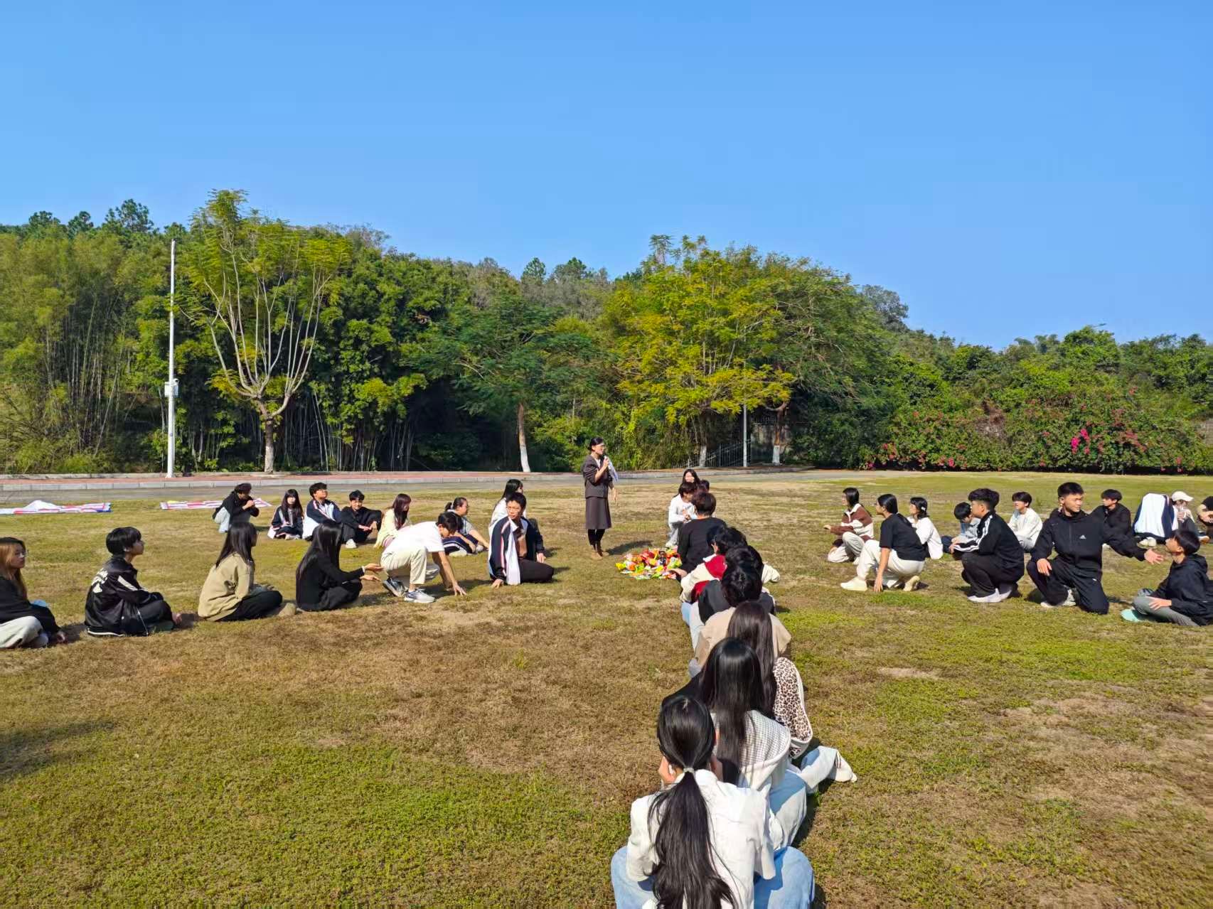 活动伊始,团总支书记陈思贤老师进行开场发言。陈老师首先肯定了全体学生干部一直以来的辛勤付出,并阐述了举办此次素质拓展活动的重要意义。她强调,学生干部不仅是学生工作的骨干力量,更是师生之间的重要桥梁,希望借此机会大家能加深了解、增进友谊、激发潜能。随后,陈老师详细介绍了本次活动的流程与规则,鼓励大家全身心投入,在活动中展现风采、收获成长。