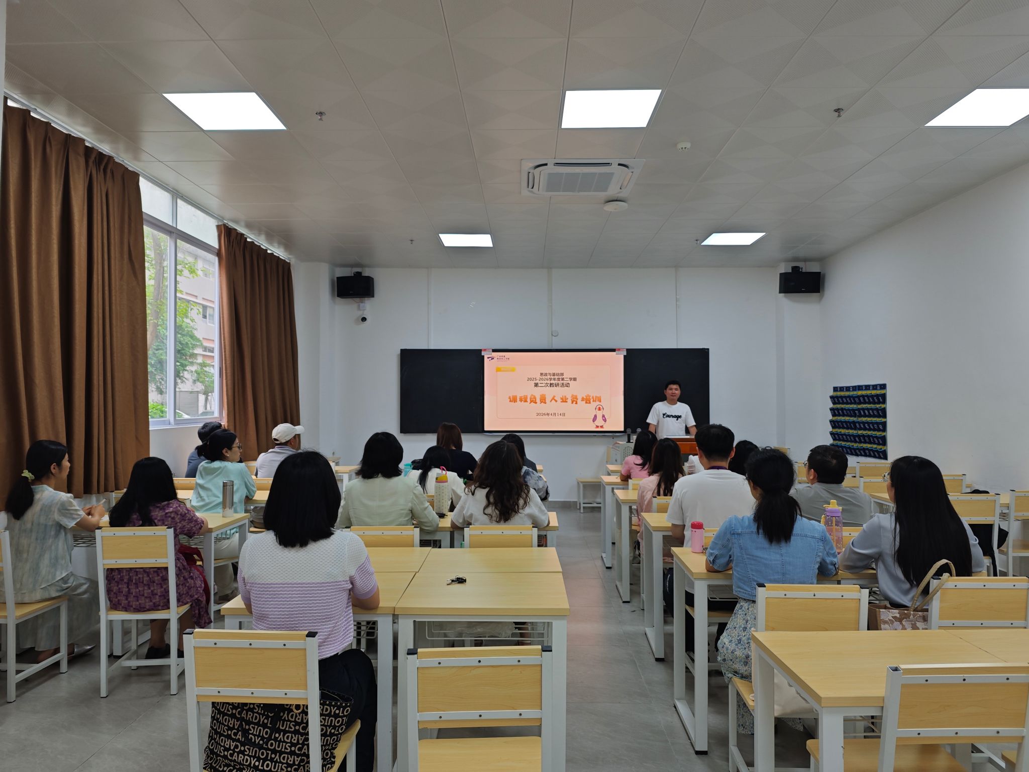 为进一步加强课程负责人队伍建设,规范课程管理,提升课程建设质量与教学实效,2026年4月14日下午,思政与基础部组织开展2025—2026学年第二学期第二次教研活动,本次活动以课程负责人业务培训为核心主题,部门全体教师参加,共同交流学习、凝聚教研共识。
